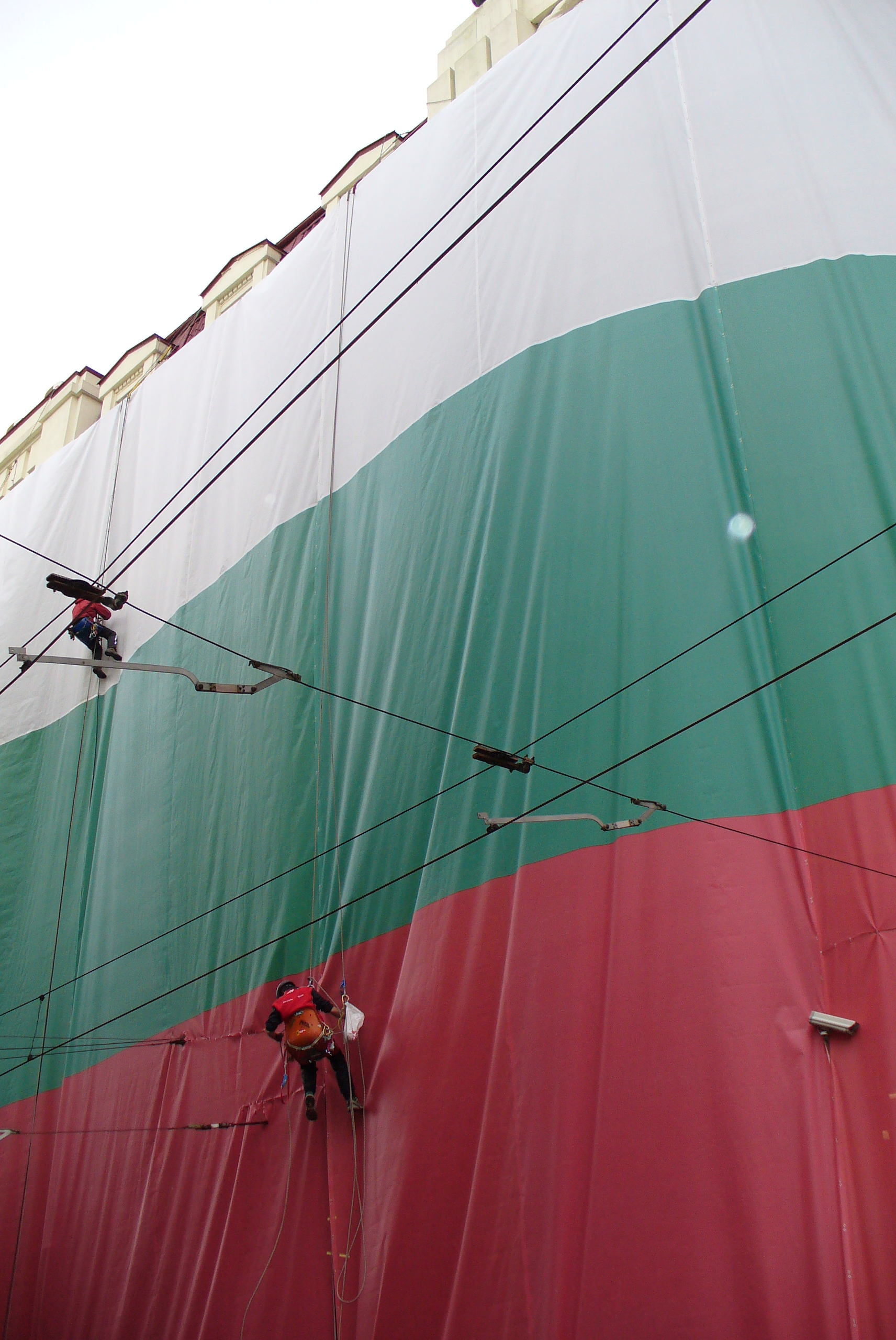 Платното с българския трикольор, с което ще бъде опакована сградата на банката, ще бъде отпечатано на пореста материя, която пропуска светлина и въздух и не задържа вода. Винилът позволява конструкцията да остане здрава при силен вятър или валежи, което освен че е ефектно, гарантира безопасността на минувачите. Българският трибагреник, с който ще бъде опакована сградата на банката, ще се състои от 13 платна с размери 6 х 20 м. Свързването на отделните части ще се извърши посредством предварително монтирани в тях капси, а за по-голяма здравина капсите ще минават през джоб. Горната част на платното ще бъде закрепена с помощта на стоманен профил за стрехата на сградата, а долната ще бъде закачена за тротоара. Общата площ на платното ще бъде 1560 кв. м.